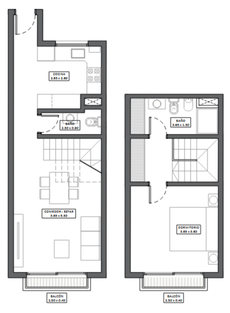 Cocina independiente, living comedor con salida a pequeño balcón.